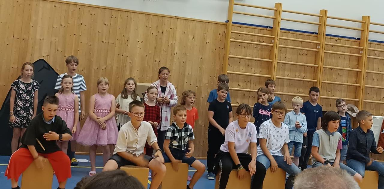 V tělocvičně jsme si vytvořili improvizované podium i hlediště pro diváky a nechali jsme vzniknout malé divadlo pro naše herce z dramatického kroužku. Ti zahráli premiéru zcela nové veršované hry „O prvním železe v Malé Morávce“, která vznikla z pera našeho dramatického kroužku, inspirovaná pověstí od pana Igora Hornišera. Děti se tak naučily nejen hrát, recitovat či vyrábět kulisy, ale při přípravě této hry se také dozvěděly zajímavosti z historie Malé Morávky. Doufejme, že budou mít ještě další příležitost si tento divadelní kousek zahrát před veřejností. Jejich herecké výkony totiž stojí za to vidět!